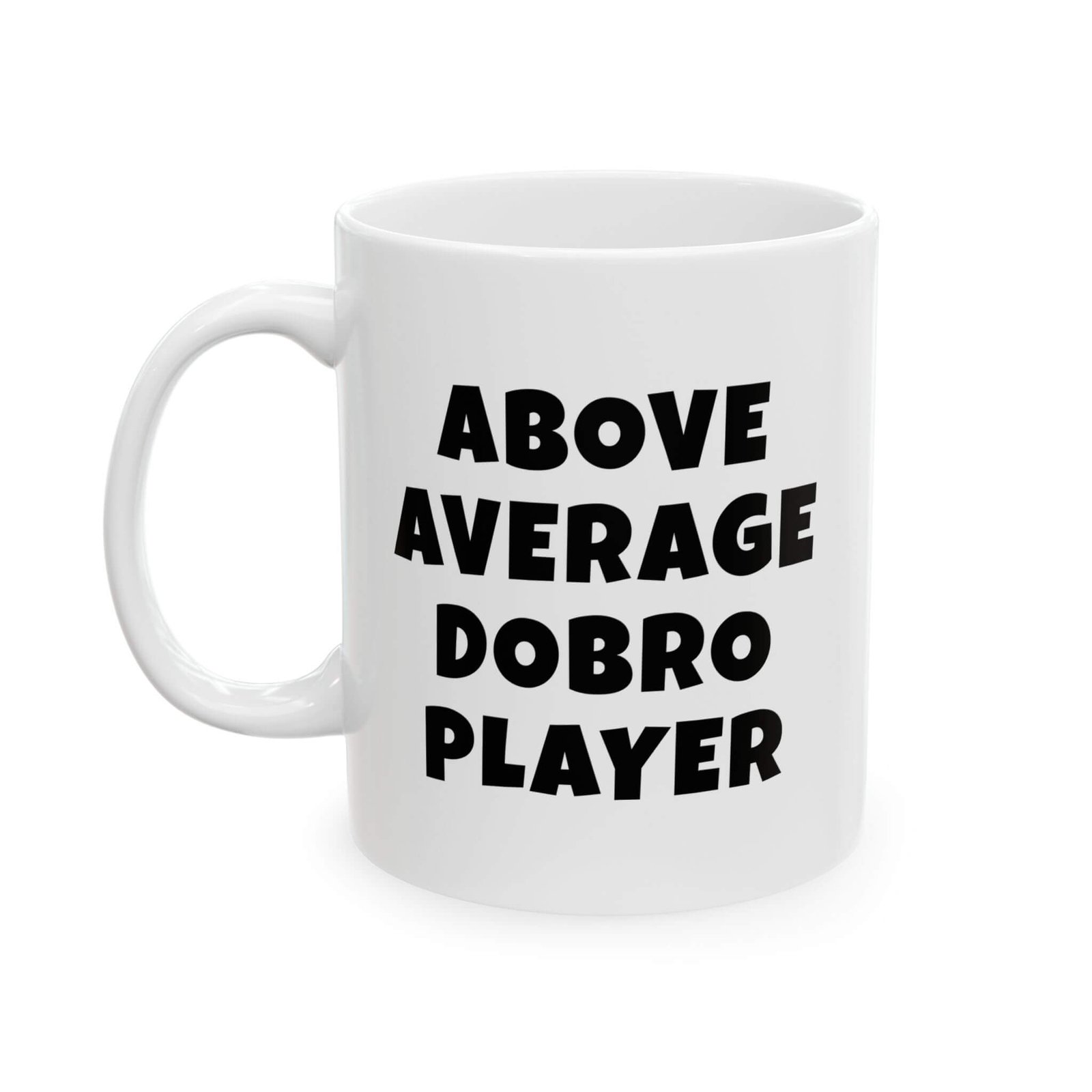 Celebrate the dobro lover in your life. “Above Average Dobro Player” is printed in bold, musician-friendly lettering on a glossy ceramic finish. Perfect for daily practice, studio sessions, and gigs. Giftable, sturdy, and guaranteed to spark a grin.