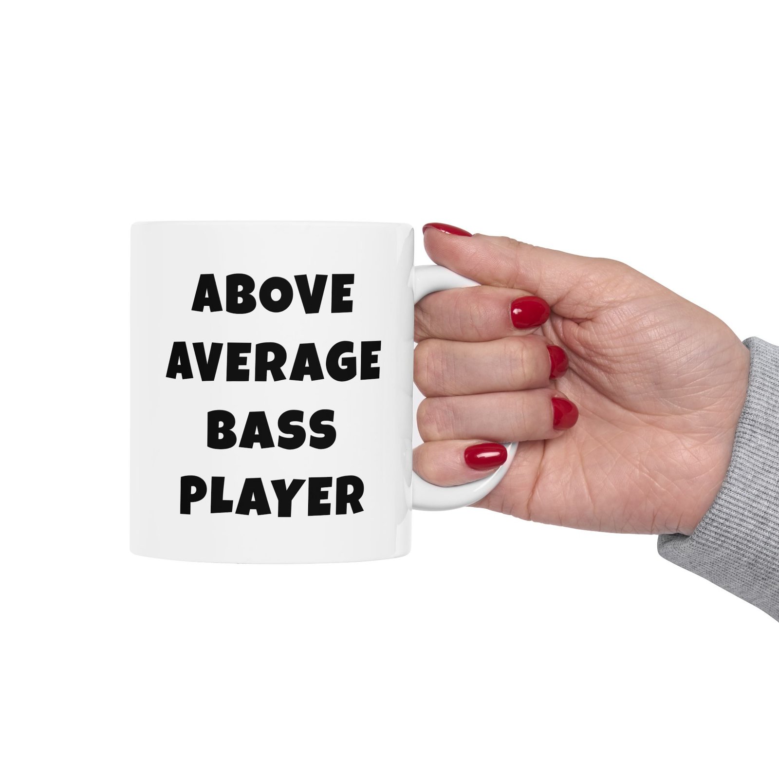 Above average bass player. A funky, feel‑good mug for groove‑makers and rhythm‑keepers. 11oz ceramic, glossy finish, dishwasher & microwave safe, lead‑free & BPA‑free. Ships Free – Packed with Love for Musicians – Because Good Timing Matters.