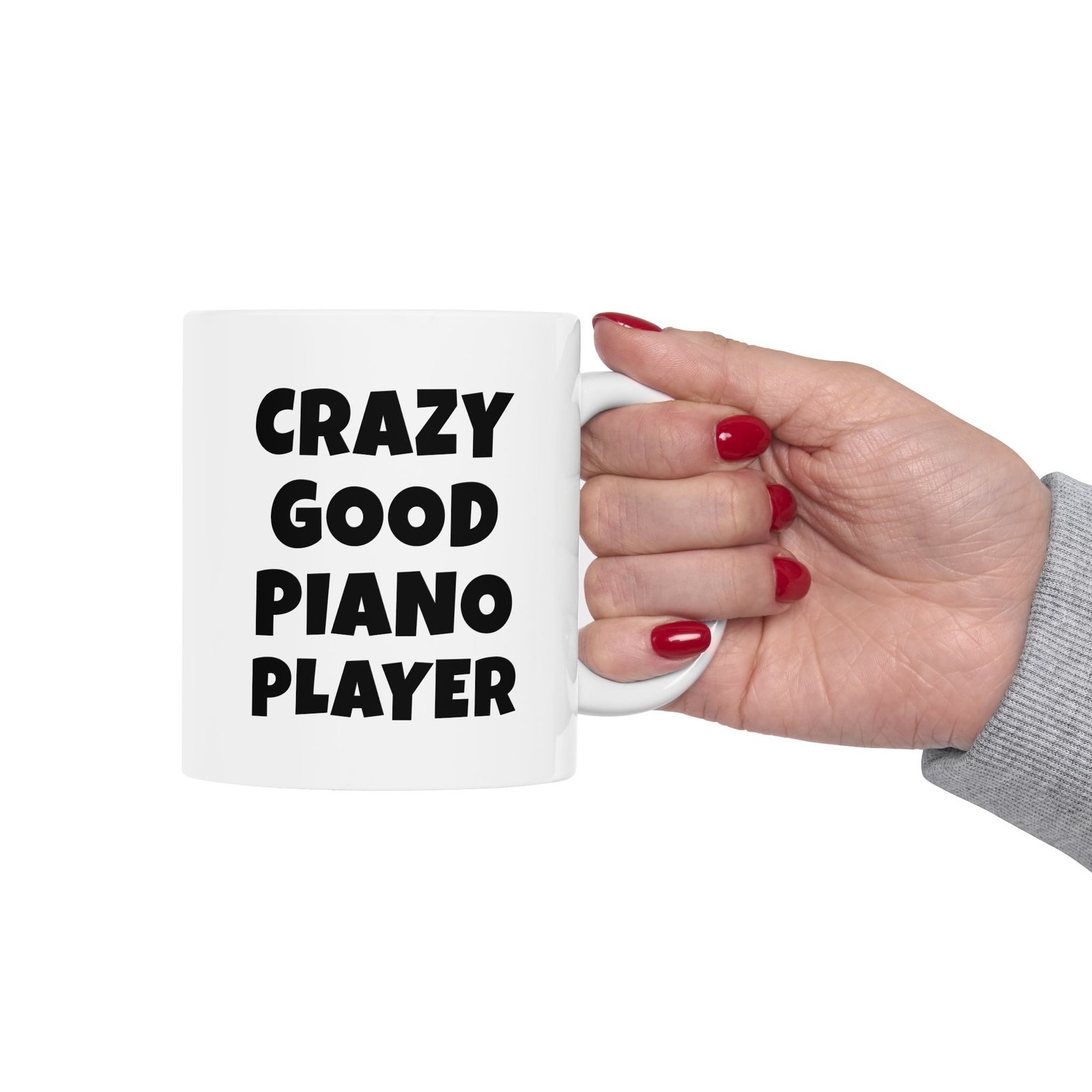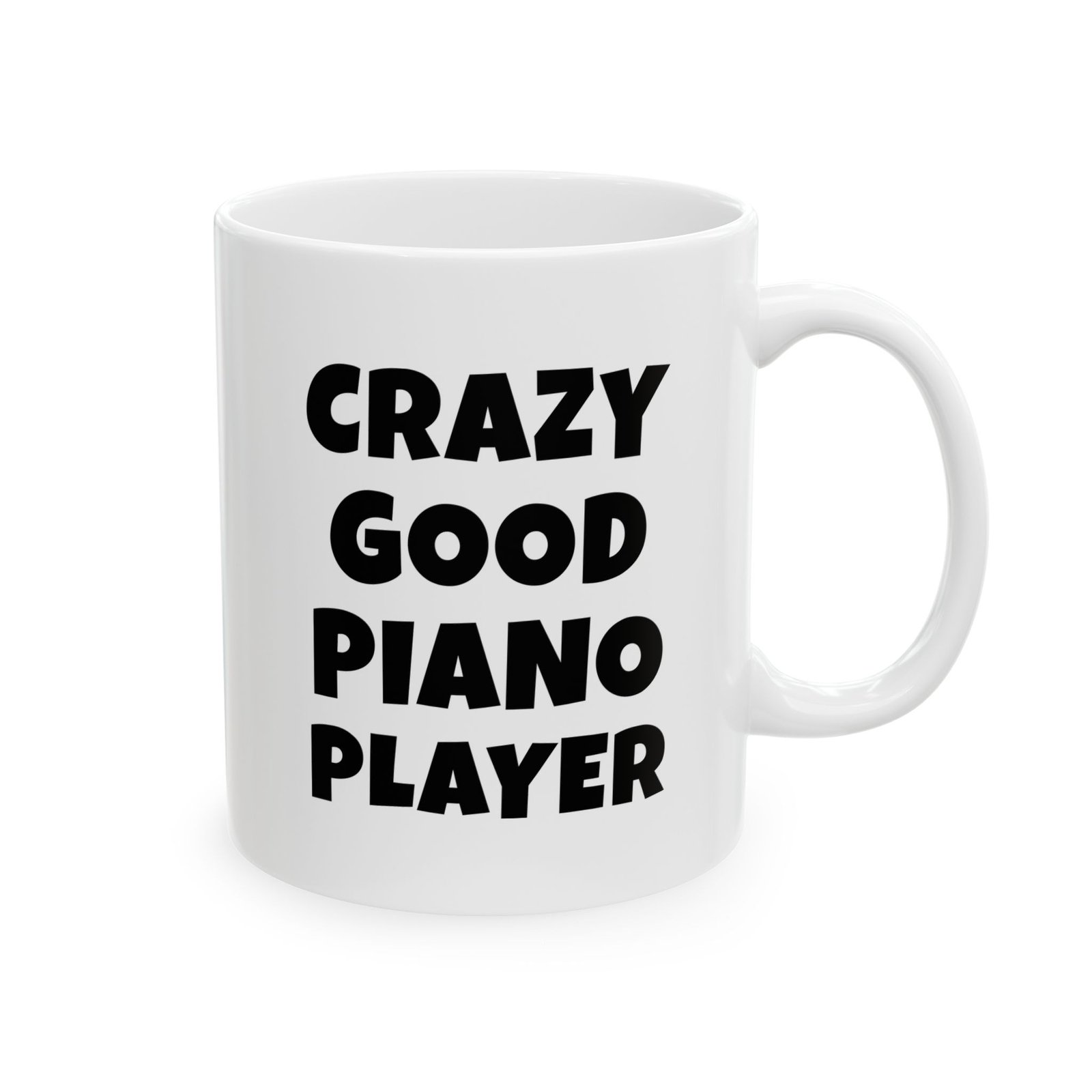 Crazy good piano player. A classic, smooth mug for pianists and music lovers. 11oz ceramic, glossy finish, dishwasher & microwave safe, lead-free & BPA-free. Ships Free – Packed with Love for Musicians – Because Good Timing Matters.