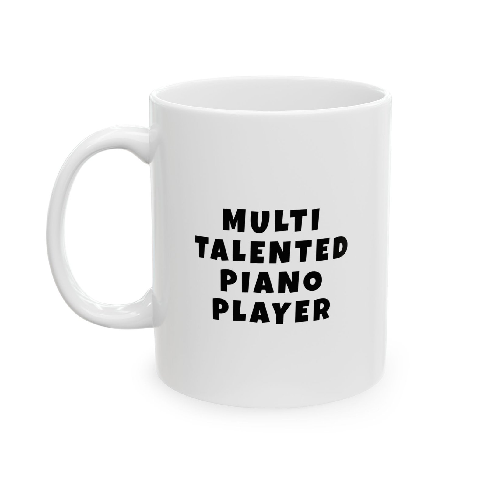 Multi talented piano player. A classic, smooth mug for pianists and music lovers. 11oz ceramic, glossy finish, dishwasher & microwave safe, lead-free & BPA-free. Ships Free – Packed with Love for Musicians – Because Good Timing Matters.