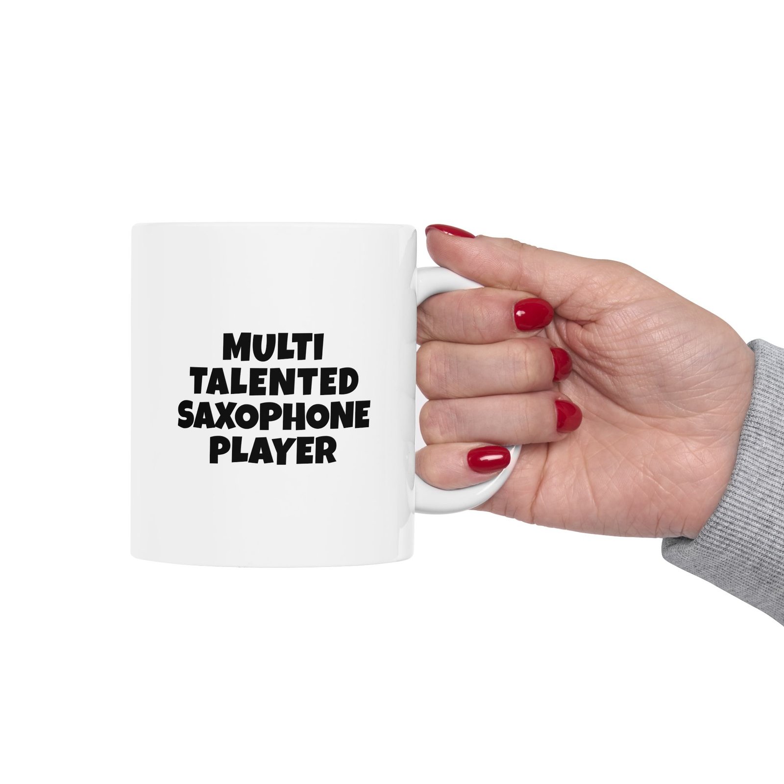 • Phrase on mug: “Multi talented saxophone player”