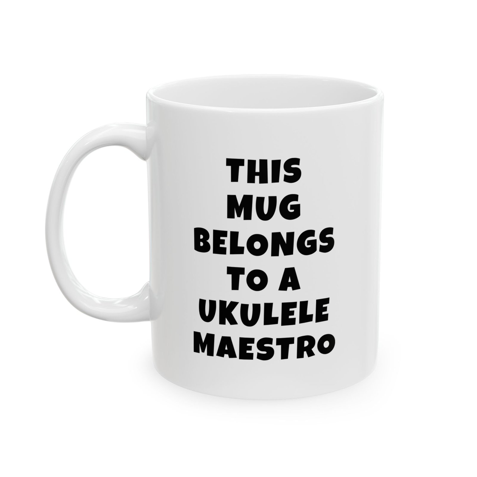 Celebrate the ukulele lover in your life. “This Mug Belongs To A Ukulele Maestro” is printed in bold, musician-friendly lettering on a glossy ceramic finish. Perfect for daily practice, studio sessions, and open mics. Giftable, sturdy, and guaranteed to spark a grin.